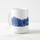 Mug avec maisons de canaux traditionnelles et bateaux en style Delfware bleu sur un arrière - plan blanc.