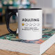 Amusante tasse adulte avec le mot "ADULTING", avec 1 sur 5 étoiles, un mauvais commentaire disant "détestez, ne le recommanderait à personne", et leur nom.