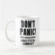 Cette délicieuse tasse blanche est accompagnée de l'expression "Ne paniquez pas ! Je suis Analyste Scientifique Professionnel.' Il est parfait pour tous ceux dans le domaine des sciences, ce qui en fait un grand ajout au bureau ou un cadeau réfléchi pour les anniversaires et les promotions.