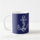 Décor maritime côtier thème blanc et bleu marine ancre tasse à café