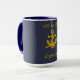Mug de membre d'équipage. Illustration centrale de l'Ancre et de la corde en couleur dorée. Personnalisez la légende en haut avec le nom du navire et en bas avec le grade/titre de l'équipage.