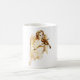 Une tasse à café à l'image douce d'un ange jouant du violon avec des fleurs dans ses cheveux. Cette image vintage a l'air patinée et s'estompe des mains du temps, et a un ton jaunâtre usé.