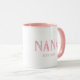 Conception d'une tasse à café Nana avec une année bien établie avec une police estampillée rose sur un arrière - plan blanc. Cliquez sur personnaliser pour modifier la couleur arrière - plan!. Visitez notre boutique pour voir cette tasse dans un large assortiment de noms de grand-père.