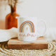 Cette tasse en céramique présente un arc-en-ciel en terre cuite orange bohème brûlé avec un coeur à l'intérieur et la "mama" écrite dans une police manuscrite amusante. Cette tasse est le cadeau idéal pour votre maman qui s'attend à vous ou pour votre maman préférée.