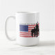 Conception de soutien militaire avec drapeau américain et silhouettes de soldats.