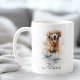 Tasse à café avec une belle aquarelle peinture d'un récupérateur d'or courant à travers l'eau et texte personnalisable, par exemple un nom.
