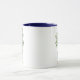 Tasse à café avec une aquarelle illustrant un olivier aux branches d'olivier luxuriantes éparpillées sur l'image. L'arbre est planté dans un planteur bleu et blanc. Image imprimée des deux côtés. Des tailles et des tailles de jante et de poignée supplémentaires sont disponibles.