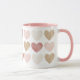 Offrez à un aimé dans votre vie cette belle tasse à café à deux tons, avec des coeurs d'aquarelle dans les tons rose, or, et crème.