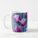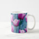 C'est un motif d'aquarelle de tulipes roses sur un arrière - plan en stuc bleu texturé.