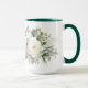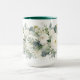Belles fleurs blanches et verdure sur cette tasse à café.
