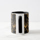 Cette tasse a un design Art Déco de diamants et de triangles en or sur un champ de noir.