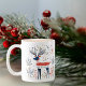 Boug de Noël de style art populaire scandinave cerfs. Il présente un cerf et des tiges stylisées en rouge et bleu et le texte "Joyeuses fêtes".