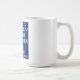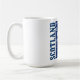 Coffee mug présente sous la forme d'un graphique de métro de sept des plus grandes villes d'Écosse en fonts bleu et blanc.