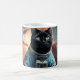 Une image captivante d'un chat noir habillé en astronaute, regardant avec confiance dans le cosmos. Entouré de soucoupes volantes et d'une nébuleuse vibrante, le chat incarne un sentiment d'aventure et de mystère.