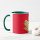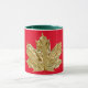 Une feuille d'érable à l'apparence métallique dorée sur un arrière - plan rouge. Parfait pour le chocolat chaud ou le café d'automne ou d'hiver.