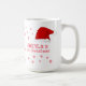Baby`s First Christmas Santa Hat Snowflake Coffee Mug. Cute baby first Christmas design with a Santa hat, red snowflakes and a baby name - personalize with your baby`s name.
