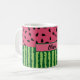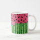 La tasse à café à pastèque mignonne a une croûte rayée verte sur le fond et rose avec des graines noires sur le dessus. Personnalisez avec votre nom dans la bannière pour une tasse qui est la vôtre !
