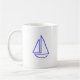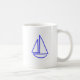 Une seule ligne bleue met la voile sur cette tasse blanche scintillante.