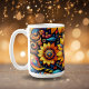 Beau tourbillon de tournesol à vapeur. Un art hyper réaliste de l'air montrant les tournesols jaunes et bleus de manière abstraite.