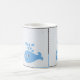Une jolie baleine bleue à bec met en valeur cette adorable tasse de café.