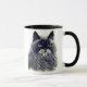 Tasse à café un noir, tandis que et portrait gris d'un beau chat perse