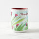 Tasse à café aux accents bordeaux design avec aquarelle bordeaux design floral. Personnalisez le beau texte du matin pour convenir à votre propre message d'inspiration.