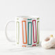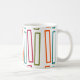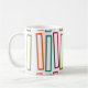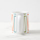 Cette tasse a un design moderne du milieu du siècle de plus grands rectangles extensibles en turquoise, orange, betterave et orange sur un champ de blanc. Si vous aimez le design mais préférez différentes couleurs, envoyez-moi un message.