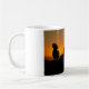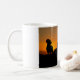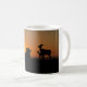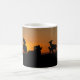 Un petit troupeau de moutons de corne s'installe pour la nuit. Leurs silhouettes se dressent contre le coucher de soleil éblouissant derrière elles. L'art informatique de Kathie Miller.