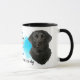 Un portrait d'un majestueux chien de Labrador Retriever noir est la caractéristique de deux côtés de cette tasse. Chaque image est placée sur un arrière - plan à bec bleu vif. Entre les deux images est le texte qui décrit ce compagnon loyal et courageux, avec "le chien LABRADOR RETRIEVER" en noir au bas. Tout le texte est facilement customisé à tout ce que vous préférez ; décrivez votre fidèle ami !