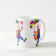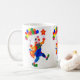 Une tasse blanche de bonne qualité avec un collage en papier peint à la main design d'un clown joyeux avec ballons et une étoile torride. Voir aussi carte de voeux, cadeaux et vêtements correspondants. Lave-vaisselle et micro-ondes coffre-fort disponibles en deux tailles.