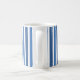 Simple mais élégant Tasse à motifs à motifs de bandes verticales en bleu. Ce design est un excellent choix pour quelqu'un qui veut quelque chose de simple mais audacieux et de couleur vibrante. Un texte peut être ajouté à cette conception pour lui donner une touche plus personnelle.