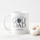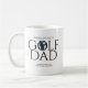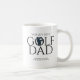 Tasse à café cool tendance avec un en-tête "WORLD’S BEST GOLF DAD" en typographie minimaliste et une silhouette de golfeur intégrée au centre du texte. Zones de texte personnalisables sous en-têtes. Idée cadeau parfaite pour votre golfeur préféré. Idéal pour Noël, Fête des Pères, anniversaire ou tout autre jour.