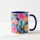 Mug Bleu foncé Rose Chaud Jaune Joyeux Floral Nom pers