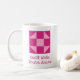 Cette tasse facilement personnalisable célèbre l'artisanat traditionnel du quilting avec une impression bicolore du motif populaire de bloc de patchwork Shoo Fly. Modifiez facilement les couleurs et le texte à votre goût dans l'outil de conception avant d'acheter pour une création vraiment unique !