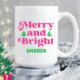 Boho Merry et Bright Christmas Pink Holiday tasse à café. facilement personnalisées avec votre nom.