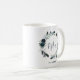 Cette élégante tasse botanique présente une couronne d'aquarelle de fleurs marines, de plumes et de feuilles sur un arrière - plan blanc propre, avec le mot "Mr" au centre dans la calligraphie moderne.