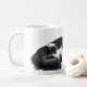 Portrait gris tendre d'un chat reposant, yeux mi-fermés dans le confort. Ce design fait de votre pause café un endroit chaleureux, doux et convivial.