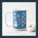 A Slice of Life and Delight présente Hello, Winter Wonderland tasses à café. Les tasses sont ornées d'un bonhomme de neige décoré de flocons blancs, d'une écriture rose et d'un fond bleu. Le bonhomme de neige porte aussi un casquette bleu et une écharpe.