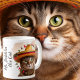 Votre chat dans une photo encadrée sur une tasse à café avec une bordure de fiesta des deux côtés. Espace pour le nom.