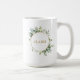 Cette tasse à café personnalisée est décorée d'une végétation d'eucalyptus peinte à l'aquarelle, de feuilles verts et d'un cadre circulaire doré. Pour une personnalisation plus avancée de cette conception, cliquez sur le lien "Customiser plus loin". Des articles correspondants sont également disponibles.