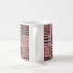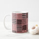 Cette tasse a un design Boho de carrés avec des motifs dans chacun en noir et rose.