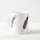 Trois plumes de colombe en deuil identiques décorent cette simple tasse.