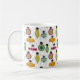 Cette tasse a un design moderne de Noël du milieu du siècle avec des ornements aux étoiles grises disposées derrière eux.