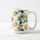 Une tasse à motif d'oranges propres, qui donne une fraicheur d'orange avec quelques feuilles de verdure comme assis dans un jardin orange.