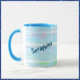 Belle tasse d'été aux rayures d'aqua abstraites, parsemée de vert clair et de rose. Personnalisez le nom du destinataire dans cette police amusante - fractionnée en diagonale sur la toile pour le panache.