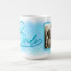 La tasse de la mariée avec un gros texte "mariée" en couleur bleu turquoise sur une peinture à l'aquarelle. La tasse n'est pas peinte à la main, c'est un design. À côté du libellé est un modèle photo carré encadré dans les mêmes couleurs. Ajoutez une photo mariage, une photo fiançailles ou autre.