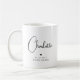 Bridesmaid Mariage Simple Modern Calligraphy Script Personnalisé Nom Coffee Mug présente le nom de votre femme d'honneur dans un élégant script de calligraphie noire accentué d'un coeur d'amour simple avec l'ajout de votre texte personnalisé comme la date et bridemaid. Les couleurs de texte et de coeur peuvent être ajustées dans l'éditeur pour convenir à votre préférence de couleur particulière. Fabuleux comme cadeaux pour votre fête de mariée. Conçu par Evco studio www.zazzle.com/store/evcostudio