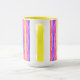 Motif tissé dans les tons pastel clairs (rose, bleu, jaune). Le motif kaléidoscopique ressemble à une peau de serpent, avec ses formes de chevrons convergentes. Le jaune vif divise le motif en bandes.