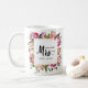 Avant le mariage, montrez votre futur nouveau nom de famille avec ce drôle THE future MRS. Typographie MUG avec un cadre floral de roses et feuilles violets et roses coordonnées à Brilliant Bloom collection mariage et accessoires.