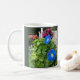 Bring the brilliance of full summer to every sip with this glorious celebration of color and motion! With sunlight at their hearts, the bluest of morning glories and a profusion of leaves and vines contrast with luscious melon-hued impatiens and petunias on this stunning mug. For yourself or someone else, this mug keeps the garden-spirit glowing all year long.